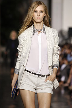 The Spanish fashion brand Mango made its first triumph on the fashion stage. Mango made not just a fashion show, and a true beauty review. For a part of its collection the brand was inspired by Nomadic tribes. The designers played with asymmetric and colored mosaic, and the fabric looked like bathed in light.